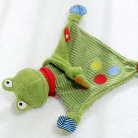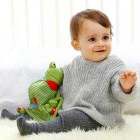 Il doudou è un pupazzo di stoffa davvero speciale ed è spesso indispensabile per i neonati. Questa divertente rana offre ai più piccoli qualcosa di morbido e coccoloso da accarezzare e da ciucciare per sentirsi rassicurati e felici. E' uno dei primi giocattoli per la prima infanzia che spesso diventa un oggetto caro che li accompagnerà per tanti anni.