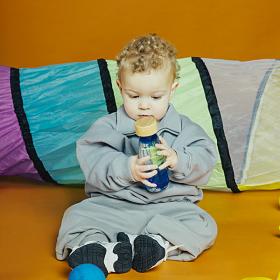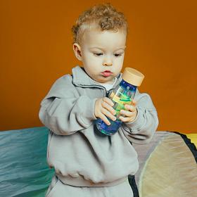 Una danza lenta, affascinante, che invita lo sguardo a seguirla. Minuscole gocce colorate si muovono in armonia, creando un gioco visivo che calma, incuriosisce e diverte i più piccoli. Ci siamo chiesti: come sarebbe racchiudere la calma in una bottiglia? Da questa idea di Petit Boum nasce una collezione pensata per accompagnare i bambini in un’esperienza sensoriale unica, dove ogni movimento dà il via a un viaggio immaginario. Basta capovolgerla, e le gocce iniziano a fluttuare, come piccoli sogni sospesi. Un invito a rallentare, osservare e lasciarsi trasportare.