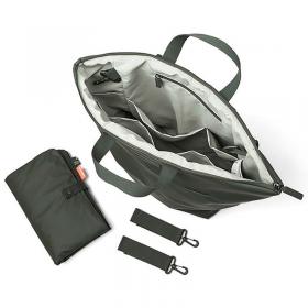 Lo zaino fasciatoio, realizzato con 38 bottiglie di PET riciclate, è pensato per accompagnare ogni uscita con praticità e stile. Ampio e funzionale, offre un facile accesso grazie all’apertura spaziosa, 7 tasche interne ed una esterna per un’organizzazione ordinata e un comodo gancio interno per ciucci o chiavi. Le spalline e la cinghia sternale regolabili garantiscono comfort durante l’utilizzo, mentre il tessuto idrorepellente e le cerniere impermeabili lo rendono ideale per ogni giornata. Incluso troverai un fasciatoio pieghevole leggermente imbottito e due ganci per agganciare la borsa al passeggino. Con la sua tonalità verde e un design unisex, è la soluzione perfetta per muoversi in libertà senza rinunciare al design.