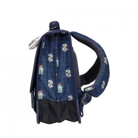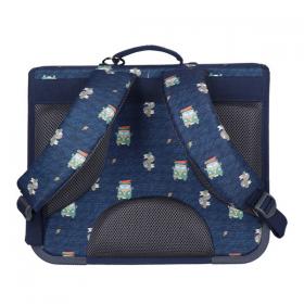 Questa cartella è realizzata in uno stile tradizionale, cosiddetto vintage ma, pur mantenendo il suo caratteristico stile retrò, è strutturata e accessoriata in linea con le moderne esigenze: leggera, facilmente trasportabile e con le cinghie imbottite e facilmente regolabili per assicurare un ottimo comfort. Le chiusure anteriori a clip sono pratiche da aprire e chiudere e la maniglia superiore permette anche di trasportare la cartella a mano. Il tessuto, stampato con disegni fatti a mano, è impermeabile ed il motivo a tema Roadtrip è un elemento che dona unicità alla cartella. La cartella è prodotta dal marchio belga Jack Piers.