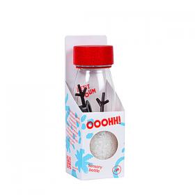 La musica di Natale sembra fatta di campanellini ghiacciati che danzano nell’aria; basta agitare la bottiglia e una piccola tempesta d’inverno prende vita, tra fiocchi tintinnanti che svelano poco a poco il curioso direttore d’orchestra: è il signor Pupazzo di Neve, con occhi di bottoni, naso di carota e braccia fatte di rametti di cedro. Chissà dove ha nascosto il suo cilindro… magari ti racconterà qualche segreto, ma fai in fretta: la primavera non aspetta nessuno! Basta uno sguardo, un gesto, un suono. Le SOUND BOTTLE sono semplici, coinvolgenti e pensate per i più piccoli, combinano stimoli visivi e sonori ideali per i primi mesi di esplorazione del mondo.