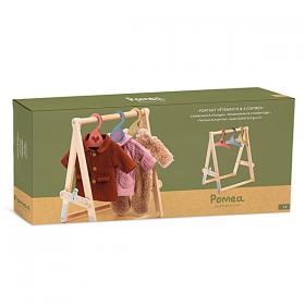 Appendere i vestiti delle bambole non è mai stato così divertente! Questo appendiabiti in legno Pomea include 3 coloratissimi appendini in legno ed è realizzato in legno certificato FSC® per giocare in modo sicuro e creativo.