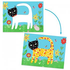 Un kit di colorazione pensato per i bambini dai 18 mesi, che utilizza quattro pennarelli mousse facili da impugnare e a inchiostro lavabile; i piccoli decorano le tavole illustrate creando punti uno accanto all’altro o sovrapposti per ottenere effetti grafici colorati e, chiudendo la pagina, i piccoli errori spariscono garantendo un risultato sempre pulito. Il set include 4 tavole formato libretto, 8 fogli, un modello e un libretto con istruzioni passo passo, tutto realizzato con materiali certificati FSC®.