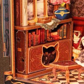 Il Count Cat's Study della Cutebee invita ad aprire un originale ingresso a forma di testa di gatto per lasciarsi alle spalle il mondo esterno e tuffarsi nel piacere della lettura, assaporando la gioia della scoperta; il kit è un dettagliato puzzle in legno 3D che unisce assemblaggio e creatività permettendo di arricchire la scena con miniature e bamboline ed è perfetto per chi cerca un passatempo divertente; la struttura in legno, tagliata al laser con grande precisione, si stacca facilmente dalle tavolette e si assembla senza difficoltà grazie alle dettagliate istruzioni illustrate (in inglese ma basta seguire i disegni), da leggere con attenzione prima di iniziare; una volta completato, diventa non solo un affascinante progetto fai-da-te, ma anche un raffinato oggetto da collezione completo di coperchio antipolvere, ideale per decorare casa, ufficio o libreria; rappresenta inoltre un dono originale e gradito per chi ama il mondo delle miniature, perfetto per un occasione speciale; adatto a ragazzi e adulti dai 14 anni in su, richiede qualche ora di montaggio e permette di ottenere un angolo libro elegante e ricco di fantasia; non incluse due batterie AAA e colla vinilica da procurarsi.