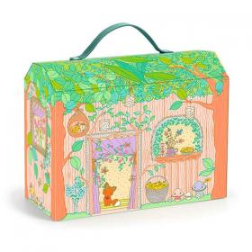 Nascosta nel cuore della foresta, la casa di Sylvia e della sua volpe Fox è un rifugio sereno immerso nella natura: aprendo la valigetta si scopre una casetta accogliente costruita attorno a un albero, con due camere, cucina, salone, tavolo e un paesaggio bucolico con il fiume che scorre poco distante. Pratica e portatile grazie al manico in tessuto e alla chiusura magnetica, questa casetta Tinyly include una figurina con il suo compagno, tutto l’arredo in miniatura ed è realizzata in cartone e carta certificati FSC®. Contenuto: 1 valigetta casa con manico in tessuto, 1 figurina e 1 compagno in plastica.