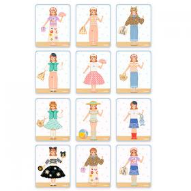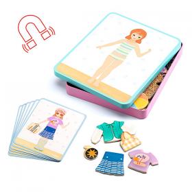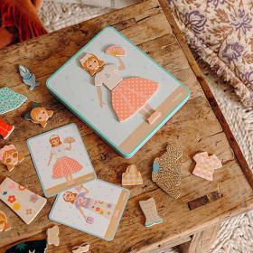 I bambini si divertono con le calamite in legno da applicare su una scatola in metallo, ricreando i 12 outfit illustrati sulle carte e scegliendo il lato corretto della scatola per completare l’immagine; un gioco di osservazione e riproduzione a tema vestiti e accessori che stimola fantasia e attenzione, con due scenari diversi grazie alle illustrazioni su entrambi i lati. Le calamite in legno sono di qualità e, al termine del gioco, tutti i pezzi si ripongono facilmente nella scatola, perfetta anche da portare in viaggio. Realizzato in legno certificato FSC®, il set comprende 1 scatola di metallo rettangolare sottile illustrata fronte e retro, 38 pezzi in legno magnetici e 6 carte modello fronte retro.