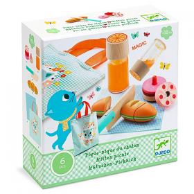 Un vero picnic per i piccoli! Tutto ciò di cui hanno bisogno è racchiuso in una graziosa scatola decorata. Con un coltello in legno, possono condividere i pasti con gli amici. La scatola è solida, colorata e facile da riporre. Grazie al velcro, i bambini possono tagliare gli alimenti come i grandi, sviluppando la motricità e l'immaginazione. Questo gioco di imitazione offre ai bambini il divertimento dei grandi! Realizzato in legno certificato FSC®, include 13 pezzi: 1 telo in tessuto, 2 pomodori, 2 dolci, 3 pezzi di pane, 4 mele e 1 coltello in legno