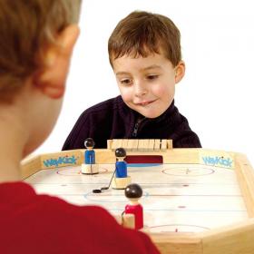 Un nuovo entusiasmante gioco Weykick che rappresenta lo sport dell'Hockey: i 4 atleti, che vengono mossi dai giocatori attraverso le potenti calamite posizionate sotto al campo di gioco, sono muniti di mazza metallica e devono riuscire a segnare in porta, colpendo il dischetto. Il gioco include una speciale polverina da spargere, in piccole quantità, sul campo da gioco, per renderlo ancor più scivoloso e quindi simile al ghiaccio. Un gioco entusiasmante, divertente e originale.