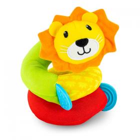 Il Leone a Spirale è stato pensato per i neonati che ancora non riescono a tenere in mano un sonaglio. Questo simpatico leone si avvolge attorno al polso del bambino in modo comodo e sicuro, rimanendo saldamente al suo posto mentre il piccolo muove il braccio per sentire il suono delicato del sonaglio. Con il tempo, i due massaggiagengive morbidi sono posizionati perfettamente per essere raggiunti e mordicchiati mentre il bambino cresce. È lavabile in lavatrice per una pulizia facile.