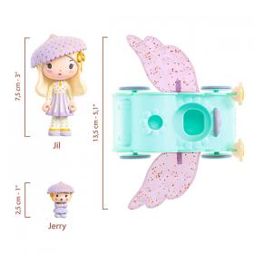 Jil e il suo inseparabile Jerry partono per un fantastico viaggio a bordo della loro auto-nuvola capace di volare, un veicolo che si muove con estrema dolcezza. Con i loro tratti delicati appartengono al poetico universo delle Tinyly, ideali da esporre, collezionare o per inventare storie e avventure magiche. Contenuto: 1 automobile con 2 ali rimovibili, 1 personaggio e 1 amichetto.